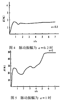 經(jīng)過計算分析,發(fā)現(xiàn)導(dǎo)致渦輪流量計產(chǎn)生誤差的主要因素是脈動流的振幅和頻率,通過對多幅圖形的比較,發(fā)現(xiàn)有如下規(guī)律: