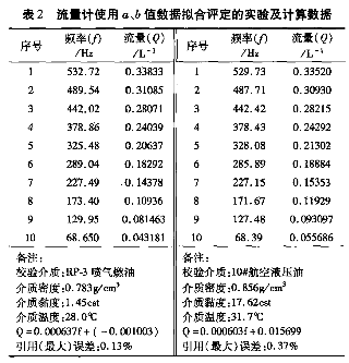 數(shù)據(jù)說明:為了更直觀地探討流量計在合理選擇誤差評定的方法以及由此涉及儀表計量特性等具體因素的影響,故在表1和表2中均分別以航空RP-3號噴氣燃油(低黏度)、航空10號液壓油(中黏度)為檢定介質(zhì)在相同的量程下檢定分別出2組數(shù)據(jù);表1中誤差評定的計算公式來自JJG1037-2008《渦輪流量計檢定規(guī)程》(以下簡稱規(guī)程)中(1)~(4),得出示值誤差(線性度);表2中誤差評定的計算來自*小二乘法運算公式算出值進行數(shù)據(jù)擬合求出理論值,*后得出儀表的引用誤差。此計算公式來自為《規(guī)程》以外的誤差評定方法。