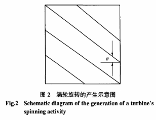 如圖2所示,由于渦輪對流體是作相對運動,如果渦輪旋轉(zhuǎn)的圓周速度V=w·r與軸線平行的流速與葉片的夾角為θ,流通面積為A,則介質(zhì)流速V=Q/A,則推動渦輪旋轉(zhuǎn)的力矩M可用下式表示: