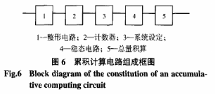 由公式(6)可知,當(dāng)電源電壓E和電容量C為常數(shù)時,電流I與輸入脈沖的頻率f成正比,當(dāng)更改外圍電路(或集成內(nèi)部)儲存電荷的電容C(1~n)參數(shù)或連接方式以及改變電路數(shù)據(jù)時,就可以得到不同介質(zhì)的流量測量范圍。在有些流量計結(jié)構(gòu)中,為了便于檢查指示儀表是否工作正常,在放大器輸入端設(shè)置有自檢電路裝置。它將振蕩器產(chǎn)生的恒定頻率脈沖信號送入后置電路,實現(xiàn)自動檢測工作正常與否的目的。4.2 總量積算