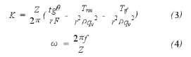 當(dāng)流量大于始動(dòng)流量以后,隨著流量的增加,渦輪旋轉(zhuǎn)角速度也在增大,流體產(chǎn)生的阻力矩Trf將成為影響流量計(jì)精度的主要因素。所以,我們假定Trm= 0,式(3)變?yōu)椋?/div>