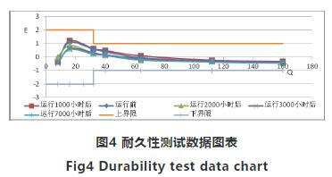 整個耐久性測試以DN80-G100 樣機(jī)為例進(jìn)行說明,*先是將三臺樣機(jī)分別安裝在不同安裝位置的同一管道中,其管道是由0.8 MPa 壓縮氣體為介質(zhì)以樣機(jī)*大流量進(jìn)行循環(huán)運(yùn)行,以每1 000 h 為運(yùn)行周期將樣機(jī)拆卸并在標(biāo)準(zhǔn)氣體流量裝置做相應(yīng)性能測試,經(jīng)過7 000 h 運(yùn)行如圖4 所示。