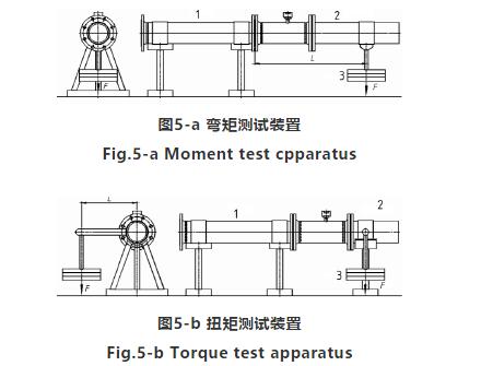 對于高壓柴油流量計量表來說,還應(yīng)當(dāng)詳細(xì)說明流量計所需求的彎曲與扭力力矩的保護(hù)水平。此數(shù)據(jù)是通過試驗直接獲得,彎矩測試裝置如圖5-a 所示,直管段1 連接氣體流量標(biāo)準(zhǔn)裝置,在直管段2 預(yù)先確定的力臂L 位置附加垂直方向的力F 而形成彎矩M;扭矩測試裝置如圖5-b 所示,直管段1 連接氣體流量標(biāo)準(zhǔn)裝置,在直管段2 側(cè)面預(yù)先確定的力臂L 位置附加垂直方向的力F 而形成扭矩T。而彎矩與扭矩均是作用于流量計入口與出口法蘭處。由于此項測試主要針對流量計強(qiáng)度的校核,為了更有說服力、提高可靠性,故將鋁合金殼體的中低壓渦輪流量計DN80-G100用于此次測試。而整個測試過程是將砝碼F 按EN12261 表10 中要求1 倍、2 倍直至做到4 倍(即力矩為3 040 N·m),未發(fā)現(xiàn)流量計殼體有任何異常變化。而測試結(jié)果表明在施加砝碼F 之前、過后得到的指示誤差與施加砝碼F 之前的指示誤差未有明顯變化。