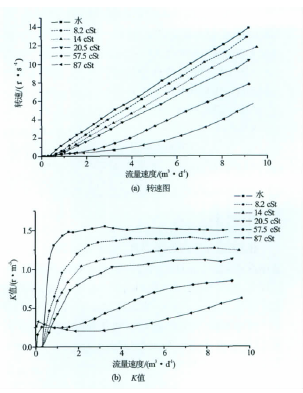 圖1渦輪計(jì)量表對不同茹度條件的響應(yīng)轉(zhuǎn)速圖和K值