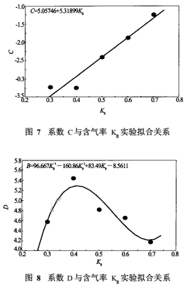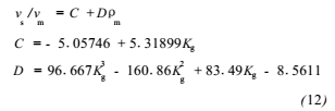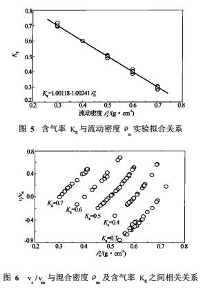 比值vs/vm與混合密度ρm、含氣率Kg之間的實(shí)驗(yàn)擬合關(guān)系(見圖6)??梢钥闯鰧?duì)于相同的含氣率Kg,vs/vm隨著混合密度ρm的增大而增大,從物理上可以理解為隨著氣液流型向泡狀流方向發(fā)展,其相間滑脫影響也逐漸增大。