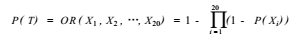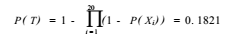 將上表底事件發(fā)生的概率代入P(T)的計算公式,則得頂事件發(fā)生的概率為: