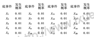 故障樹定量分析的主要任務是計算頂事件的發(fā)生概率和對各底事件進行重要度分析。