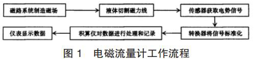 渦輪計量表的產(chǎn)生主要是基于法拉*電磁感應(yīng)定律。在渦輪計量表的應(yīng)用中,磁路系統(tǒng)會在流量計運行過程中逐步出現(xiàn)直流磁場與交流磁場,該磁場的產(chǎn)生為后期的測量提供了良好的前提條件,營造了測量所需的磁場環(huán)境,因此,在渦輪計量表應(yīng)用時,一旦被測液體在導(dǎo)管中經(jīng)過該磁場環(huán)境時,必然會產(chǎn)生一定的切割磁力線運動,在這種情況下,電*傳感器就會發(fā)揮其作用,將導(dǎo)管內(nèi)的流量轉(zhuǎn)換為感應(yīng)電勢信號,隨后此轉(zhuǎn)換形成的信號逐步被傳遞給轉(zhuǎn)換器。而轉(zhuǎn)換器更是可以將所獲得的流量信號等加以處理,通過分析、對比等,轉(zhuǎn)換器會將該信號變?yōu)闃?biāo)準(zhǔn)信號,隨后將該信號輸出給積算儀,進一步進行信號的處理,這些處理以后的信號*終會在渦輪計量表的儀表中顯示,呈現(xiàn)*終的流量測量結(jié)果,其基本的流程如圖 1 所示。
