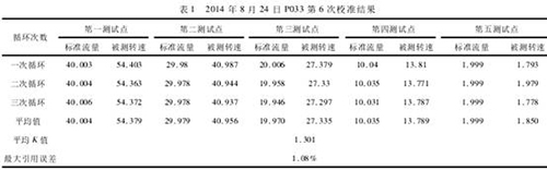 為了驗(yàn)證可行性,采用室內(nèi)校準(zhǔn)實(shí)現(xiàn)。機(jī)加組裝2支型號(hào)HK-ZS-40儀器,編號(hào)為P033、P032,2支HK-ZS-20儀器,編號(hào)為K001、K018,進(jìn)行室內(nèi)流量校準(zhǔn)。校準(zhǔn)介質(zhì):自來(lái)水。從2014年5月13日到2014年9月20日,先后校準(zhǔn)阻抗儀40多次。