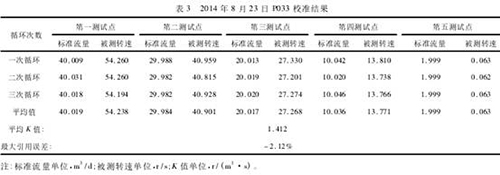 注:標(biāo)準(zhǔn)流量單位,m3/d;被測(cè)轉(zhuǎn)速單位,r/s;K值單位,r/(m2?s)。