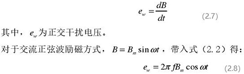 從上圖 2.5 中可以觀察到兩個電*、勵磁線圈、轉(zhuǎn)換器內(nèi)阻之間形成了一個閉合回路,將此回路稱之為初級繞組,從理論上進行分析,磁力線 B 應(yīng)當平行于勵磁線圈所產(chǎn)生的磁感應(yīng)線,但在實際的應(yīng)用過程中由于工藝差異,因此無法達到理想狀態(tài),會產(chǎn)生磁力線穿過勵磁線圈磁感應(yīng)線的情況,此時將會產(chǎn)生相應(yīng)的感應(yīng)電動勢,將此部分感應(yīng)電動勢稱為變壓器效應(yīng)。此效應(yīng)同樣滿足于楞次定律,利用楞次定律進行計算可得如下電動勢: