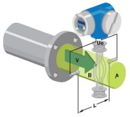 基本上,當(dāng)導(dǎo)電液體流過(guò)磁場(chǎng)時(shí),會(huì)感應(yīng)出電壓。為了測(cè)量該產(chǎn)生的電壓(與流動(dòng)的液體的速度成正比),使用了兩個(gè)彼此相對(duì)安裝的不銹鋼電*。