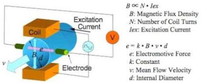 使用智能空調(diào)水流量計(jì)測(cè)量的液體流量必須導(dǎo)電是非常重要的。法拉*定律表明,信號(hào)電壓(E)取決于平均液體速度(V),導(dǎo)體的長(zhǎng)度(D)和磁場(chǎng)強(qiáng)度(B)。因此,將在管的橫截面中建立磁場(chǎng)。