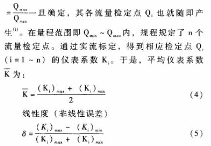 在QQmax,即在測量范圍之外誤差將超過δmax。這就是說雖然渦輪流量傳感器具有很好的重復性,但是由于電脈沖信號頻率F與體積流量Q之間是非線性的,按照常規(guī)的平均儀表系數(shù)`K的計算方法,對于一定的誤差限士A,由于非線性誤差的存在使得渦輪流量傳感器的工作范圍只能限定在Qmin~Qmax之內。