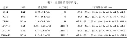 研究中選擇常用的CL系列消防水流量計(jì)和LWGY系列消防水流量計(jì)進(jìn)行試驗(yàn)。分別選取DN4,DN6和DN10口徑的流量計(jì),且均為0.5級(jí)。