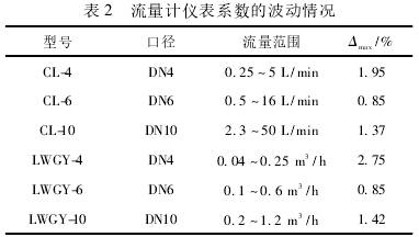 其中,0.75<K<1.2。在此基礎(chǔ)上,每次試驗(yàn)過(guò)程中,根據(jù)流量計(jì)的流量范圍,選取9個(gè)流量點(diǎn),每個(gè)流量點(diǎn)校準(zhǔn)3次。流量計(jì)的銘*信息及直管段口徑選擇詳見(jiàn)表1。