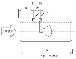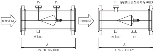 取壓口法蘭公稱直徑(標準設(shè)計)為DN40,也可以依據(jù)用戶要求選取法蘭直徑。