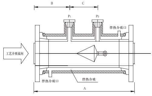 專門為測量要求夾套管伴熱工藝介質(zhì)的流量而設(shè)計,特別適合易結(jié)晶介質(zhì)及溫控要求嚴格的場合。鋼制夾套管法蘭標準:SHT501-1997。