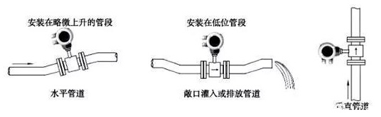 選擇充滿液體的直管段,如管路的垂直段(流向由下向上為宜)或充滿液體的水平管道(整個(gè)管路中*低處為宜),在安裝與測(cè)量過(guò)程中,不得出現(xiàn)非滿管情況。