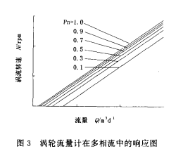 如果用全集流型渦輪流量計測得渦輪轉(zhuǎn)數(shù)N,在標準計量裝置上通過標定獲得Kw和q,結(jié)合輔助參數(shù)ρn,就可以用公式(3)計算出多相流總量。用(3)式在油井的油、氣、水多相流流量測量中得到了實際應用,計算誤差在5%以內(nèi)。