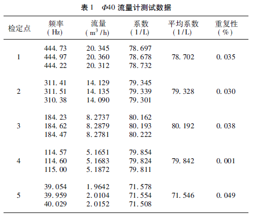 此次試驗測試選用兩臺齒輪油流量計,口徑分別為Φ40、Φ25,主要考慮40 和25 口徑的流量計應(yīng)用較多,同時流量銜接,更具有代表性。其主要參數(shù)如下: