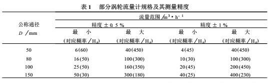 部分渦輪流量計的規(guī)格和精度如表1所示。