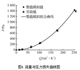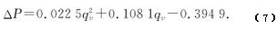 根據(jù)圖4中壓力損失隨流量的變化趨勢,可以將流量與壓力損失之間的關(guān)系擬合曲線為二次多項(xiàng)式,其表達(dá)式為