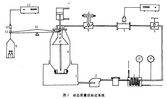 由于靜態(tài)法必須等待容器中的液體靜止后才能測量,另外容器中不能存在殘留液體,所以效率低,動態(tài)標(biāo)定法是在液體流動情況下進行質(zhì)量或容積測量:一般先把容積或質(zhì)量固定,只測量時間,操作簡便,效率高。圖2為1種動態(tài)質(zhì)量法標(biāo)定系統(tǒng),可在連續(xù)運行狀態(tài)下對流量計進行標(biāo)定。其工作過程為:打開主泵2.使油液在回路中循環(huán);調(diào)節(jié)油溫控制器3.使油液達到標(biāo)定溫度;調(diào)節(jié)流量調(diào)節(jié)閥4.使被校流量計5.指示標(biāo)定刻度;流場穩(wěn)定后先在祛碼盤8中加起始質(zhì)量祛碼,秤10失去平衡;按標(biāo)定按鈕,計量油箱6底部放泄閥關(guān)閉、計時、計數(shù)器13回零,開始充液;隨著計量油箱中油液增加達到起始質(zhì)量時,秤10恢復(fù)平衡,執(zhí)行元件11觸發(fā)傳感器12.使計時、計數(shù)器13開始計時計數(shù);再將一標(biāo)準(zhǔn)質(zhì)量砝碼加于砝碼盤8中,秤10又失去平衡;繼續(xù)充液,當(dāng)*二次達到平衡時,再次觸發(fā)傳感器12.使計時、計數(shù)器停止工作。由所計時間t和質(zhì)量即可求出質(zhì)量流量。一個循環(huán)結(jié)束后,放泄閥自動打開,計量油箱中的油液放到主油箱1中.整個標(biāo)定過程中,只需人工調(diào)節(jié)流量閥,加2次固定質(zhì)量的標(biāo)準(zhǔn)祛碼。每次循環(huán)時間1~2min,效率較高。另外計量油箱全部質(zhì)量支在秤上,不與管路系統(tǒng)有剛性連接,因此精度高。為了防止油液沖擊影響測量精度,計量油箱中采取了防沖擊措施。